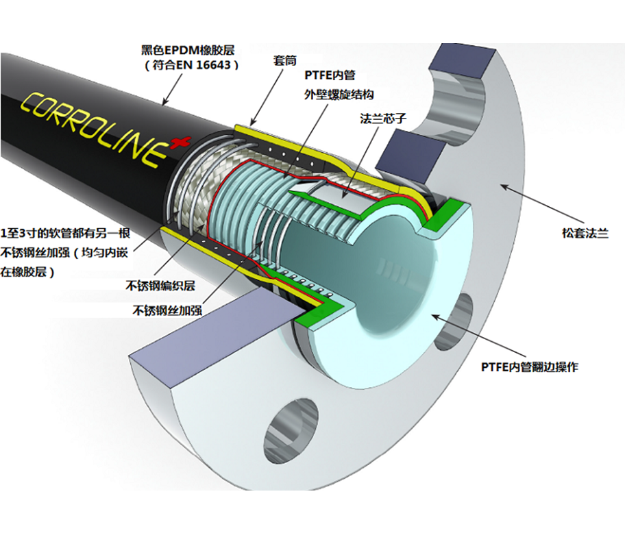 Corroline+ GP 特氟龙软管总成结构图(扣压翻边法兰)